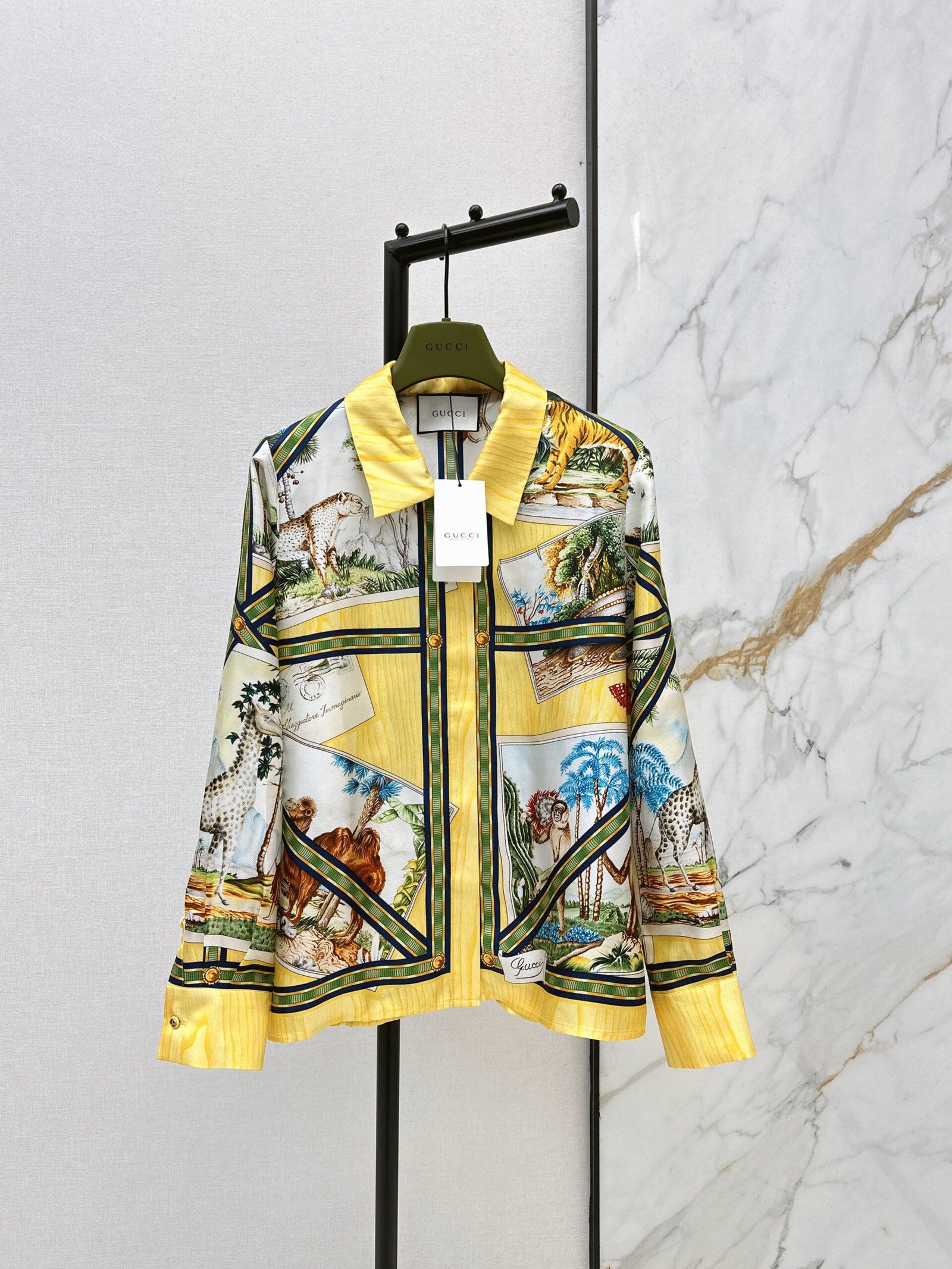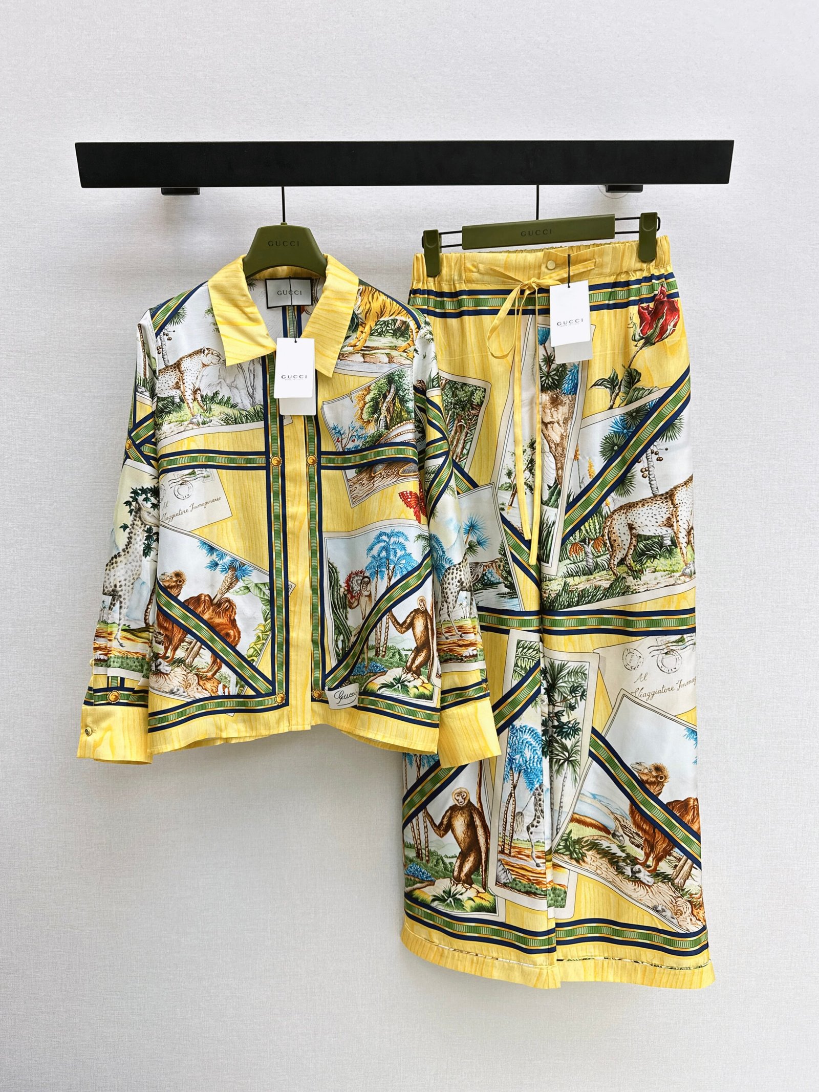 A-Animal Print Silk Shirt Set-2754