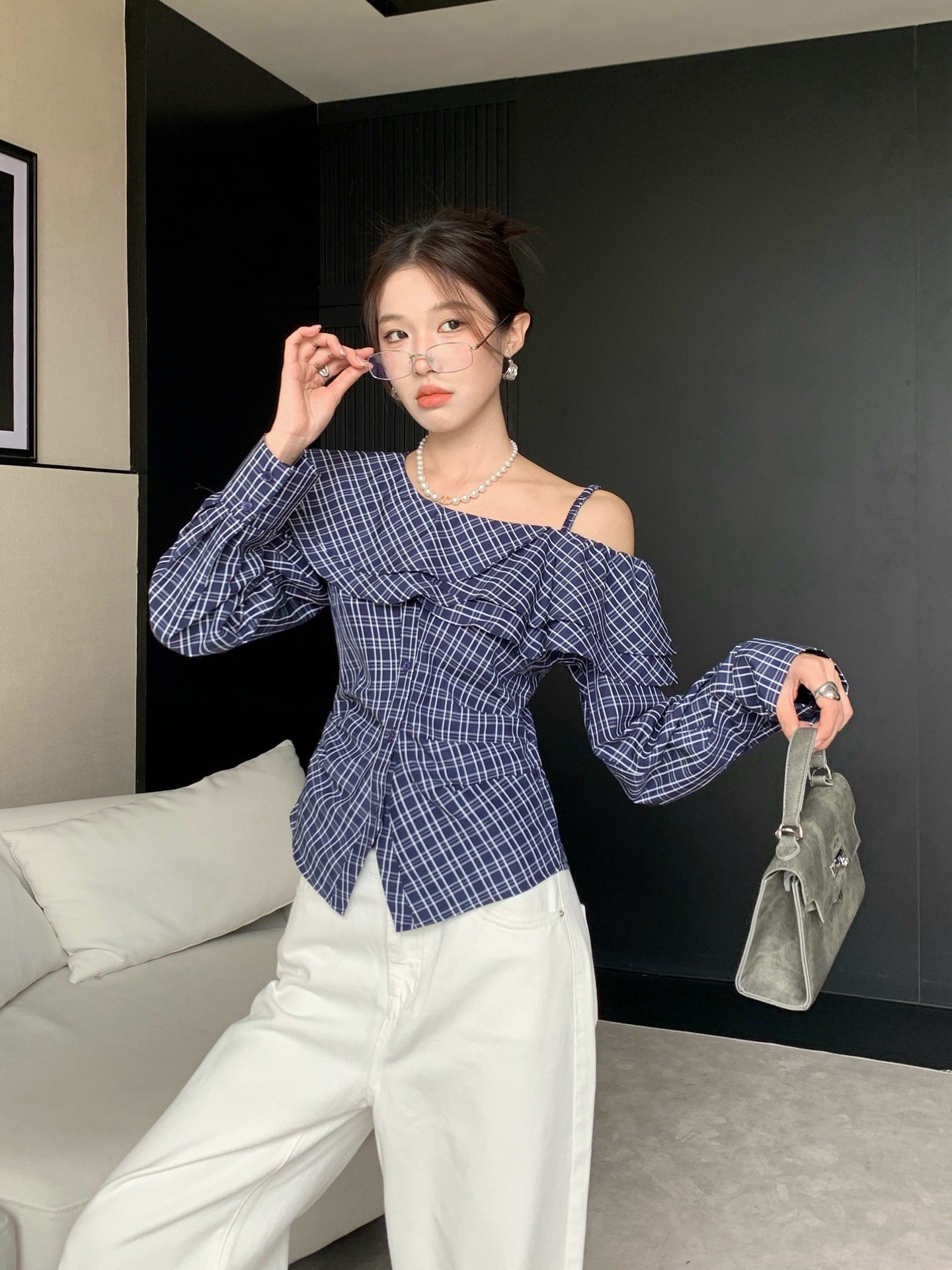 A-Niche-style off-the-shoulder blouse-2737