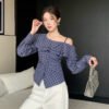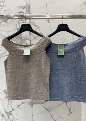 A-Off-the-shoulder knit short-sleeve top-2716