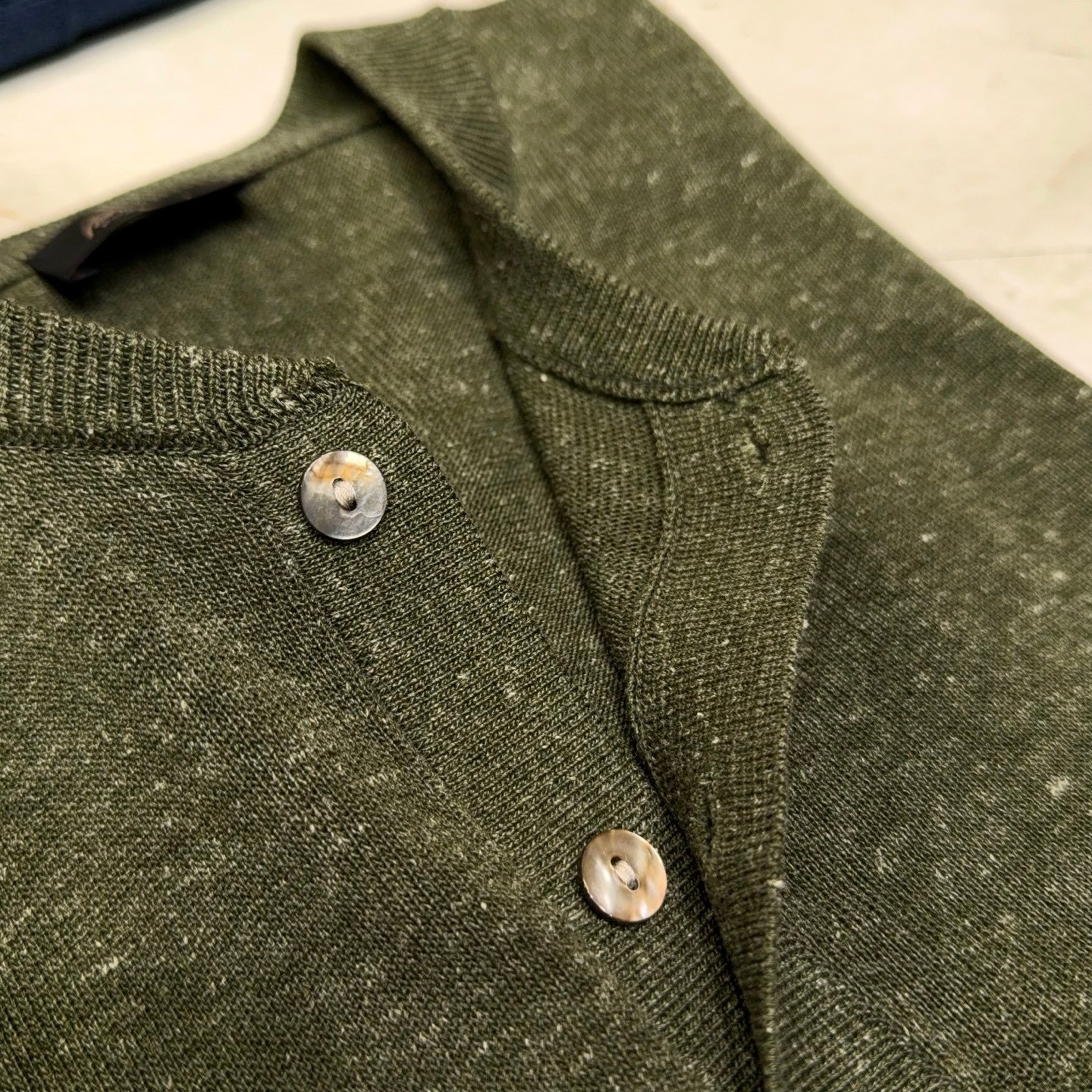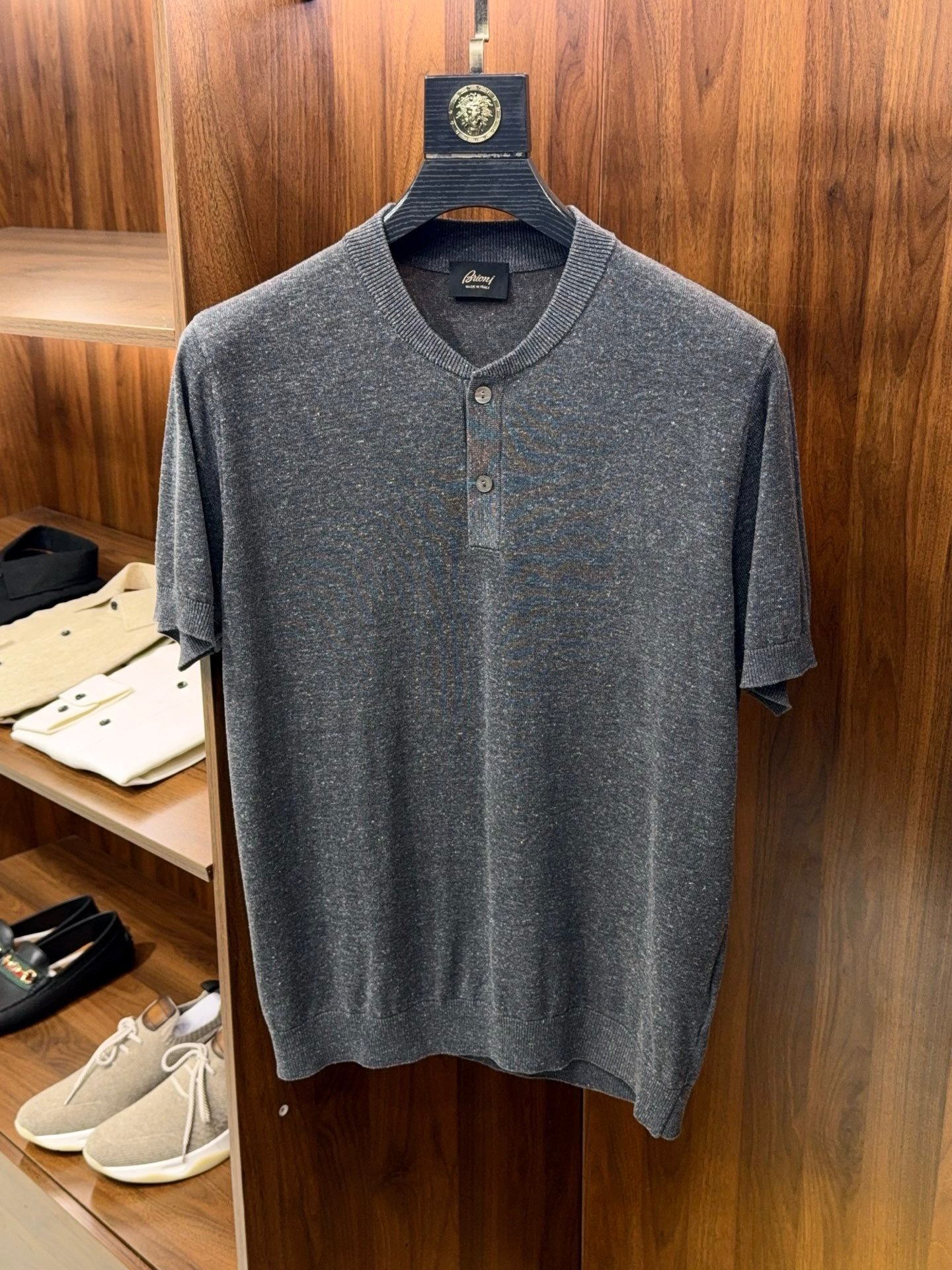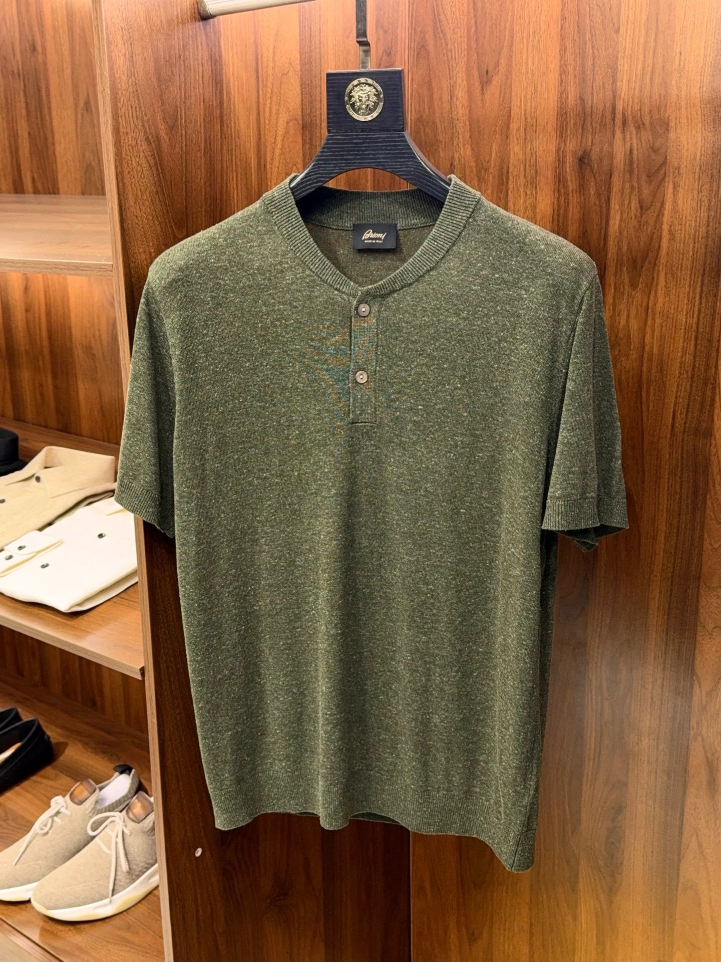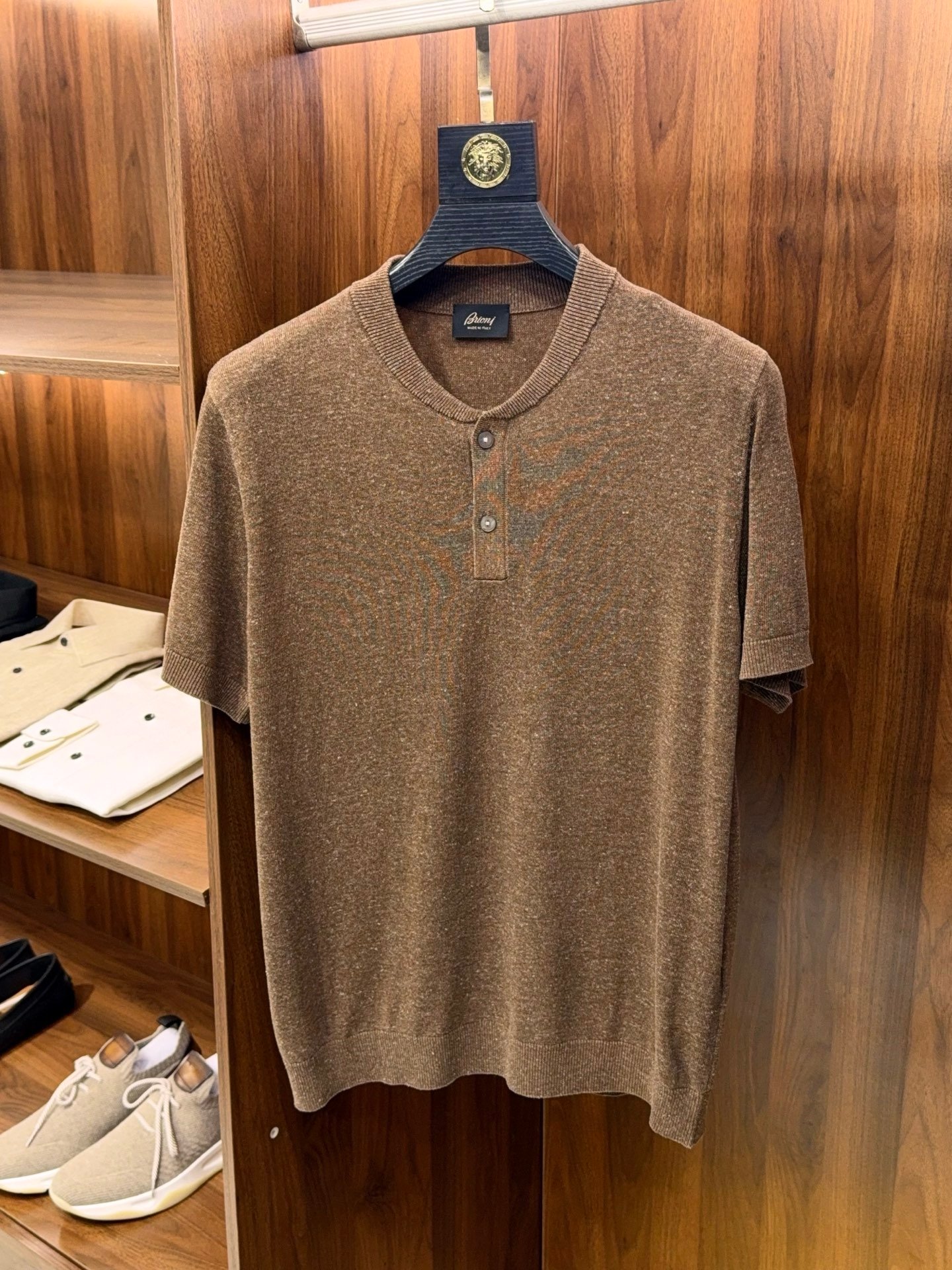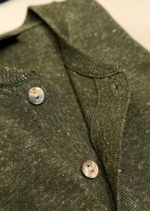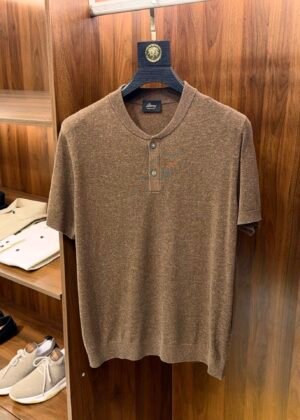 B-Men’s Henley Collar Linen Knit T-Shirt-2529