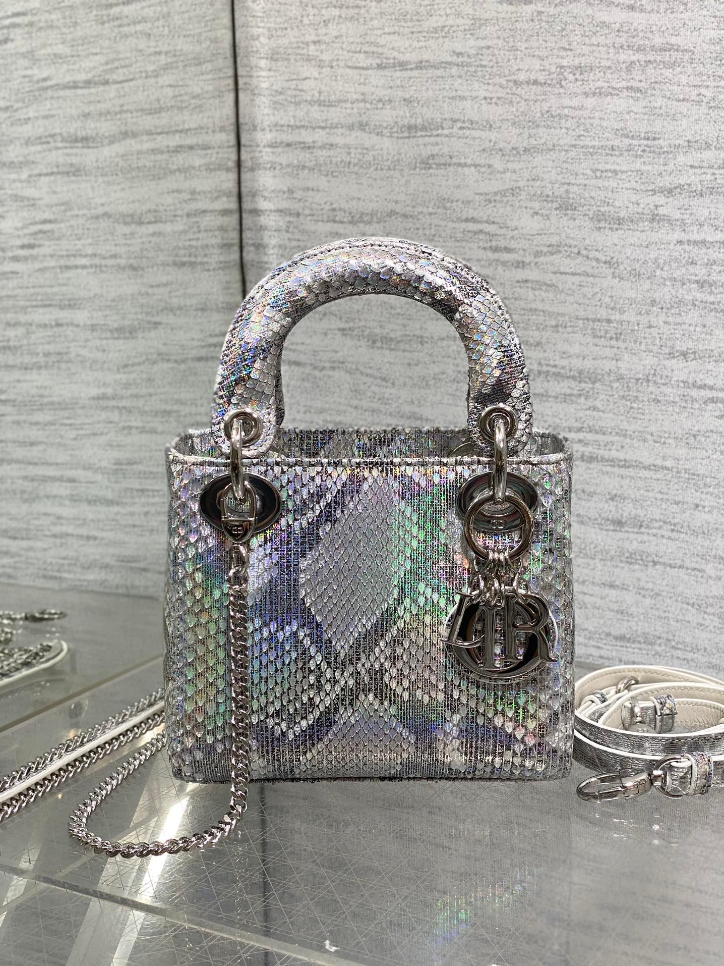 D-Limited edition rare snake skin three-compartment Diana-1296